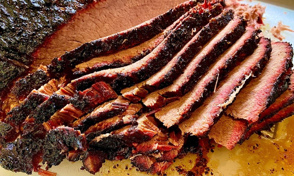 شرائح من لحم البريسكت الفاخر “بلاك أنجوس”، مدخنة بعناية على نكهات الحطب المختار لمدة 16 ساعة، لتعطيك طراوة لا تُقاوم ونكهة مدخنة عميقة. يُقدَّم مع صوص الباربكيو والعسل اللذيذ ليكمل التجربة